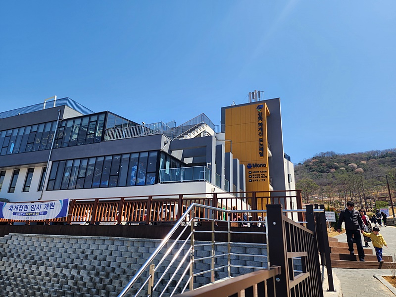왼쪽엔 모노레일 매표소, 오른쪽엔 화개정원 입장권 매표소가 있어요.